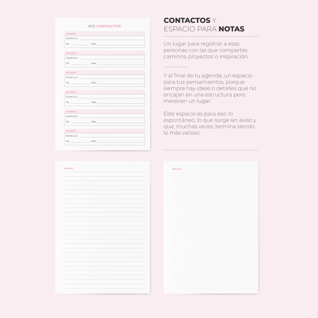 ✅ Espacio para notas (en hojas rayadas y punteadas)